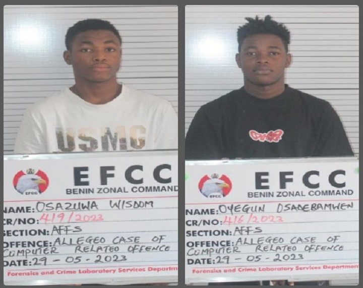 In a recent ruling on Friday, July 14, Justice M. Itsueli of the Edo State High Court in Benin City convicted and sentenced two individuals involved in internet fraud. The offenders, namely Wisdom Osazuwa, an 18-year-old self-proclaimed tailor, and Oyegun Osadebamwen Godwin, a student, were separately arraigned by the Benin Zonal Command of the Economic and Financial Crimes Commission (EFCC) on charges related to the unlawful possession of fraudulent documents.