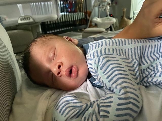 The US musician jumped on Instagram to share the adorable pictures of his cute son sleeping alongside these words, “BABY AEKO”