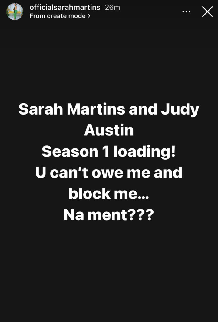 Nollywood actress, Sarah Martins has come out to call out her former best friend, Judy Austin, over a certain N1M she allegedly owes her. She recently had her say via her Instagram page, and fans have been reacting.