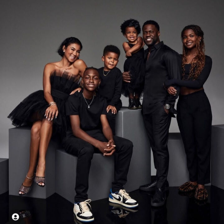 Popular comedian, Kevin Hart has jumped on Instagram to share a photo of his family. Him, his wife, Eniko Hart, their kids, and his kids from his first wife, Torrei Hart, all posed for a photoshoot, and fans have been reacting.