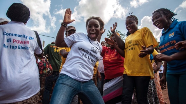 Earlier, thousands of people gathered overnight around the Cotton Tree, a massive tree in the centre of the capital for a candlelit vigil organised by women’s groups to pay tribute to health workers who lost their lives.