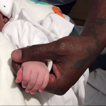 Her husband/manager, Tunji ‘Tee Billz’ Balogun shared a photo of him holding the newborn baby’s hand today, July 22, 2015.