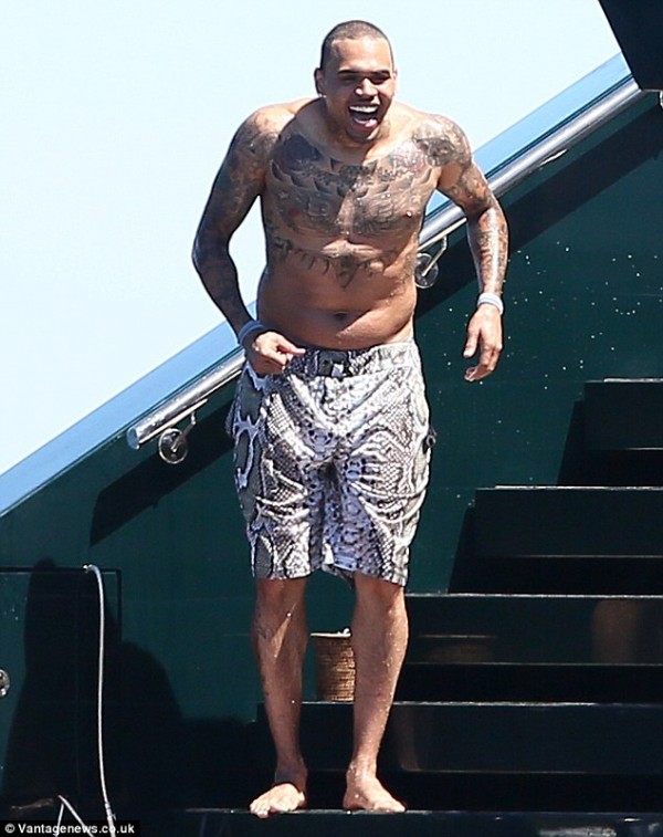 American singer Chris Brown has been spotted in swimwear showing that he really gained some weight while in jail.
